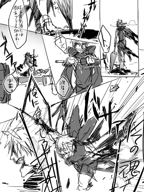 【描きたかったのは、1コマ目のジャキャーン!ってコマからはみ出たマシンガン(?)と構えてますな雰囲気だけ。】