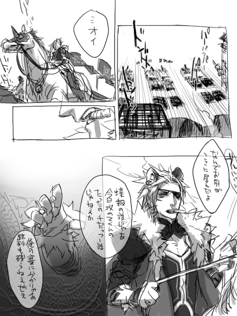 そうそう、確か、↑安全な所に居て欲しい、こういう事は俺に任せとけみたいな事を、口下手で歪曲して言ってしまう+それのフォローまで、そして戦闘シーンで締め。(元々前2種と合わせて戦闘メインで、きまぐれに国の設定とか活かしたかっただけ)